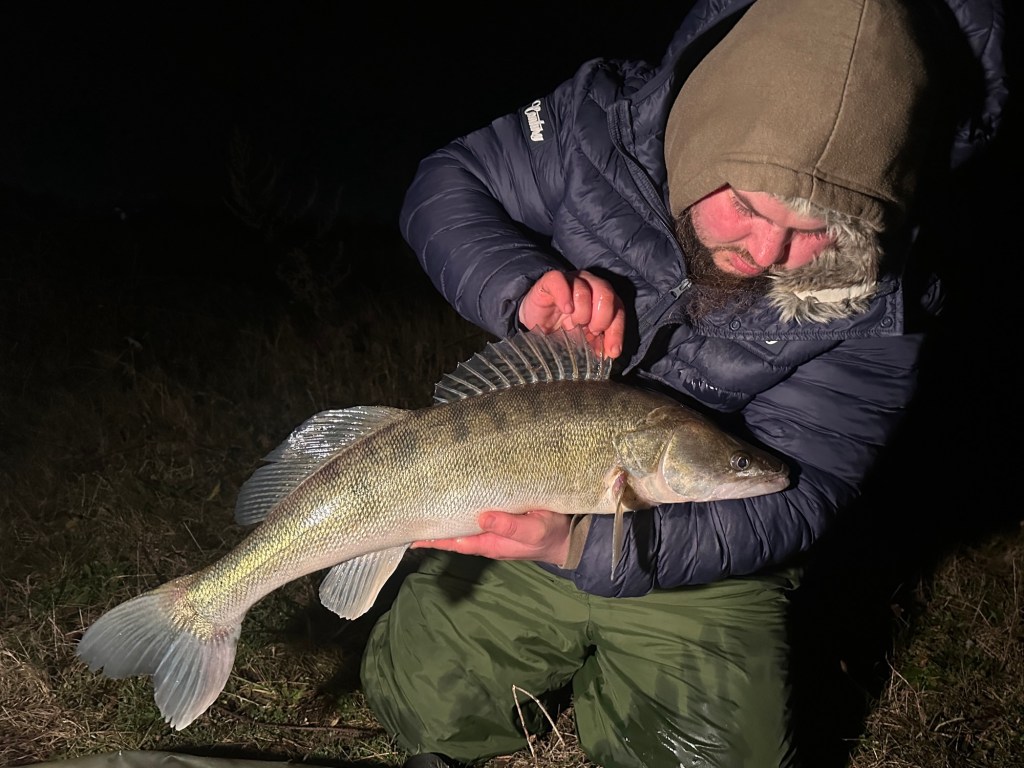 I unhooked the Zander and returned it after a quick mat shot, it wasn’t very big but in real fine condition and still alive and not Seal food.