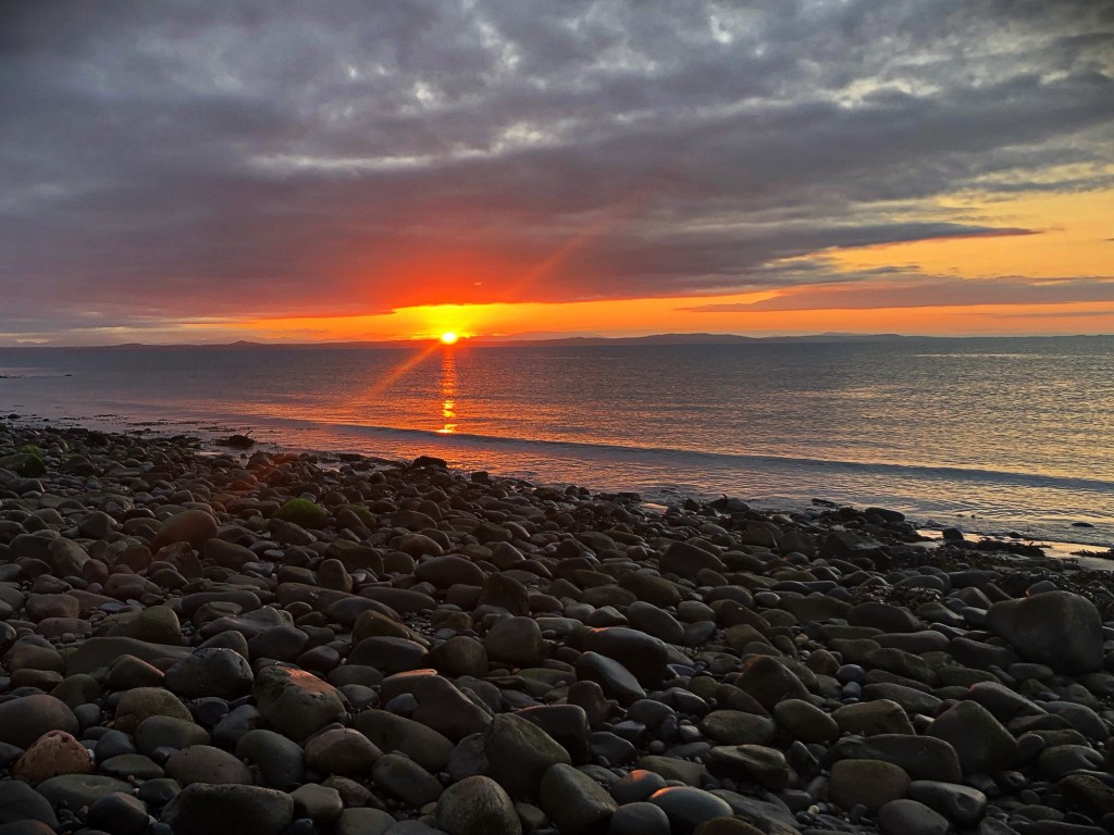 We had both been at work all day Friday and not wanting to waste any time so we opted to drive through the night, excitement was high and the journey passed in a blur and before we knew it we were pulled in the lay-by behind the first mark. I suggested a couple of hours sleep before hitting it hard but Chris was already out the van raring to go, we donned our studded waders and head torches and went to investigate. The mark we had found wasn’t what we expected the rocks were pretty hard going and didn’t really offer us much of an opportunity to fish, it was still pitch black at this time so other than what we could see under torch light we were searching blind, so straight back on Google Earth. Just to the right of this rocky out crop there looked to be a cobble beach, it had to be worth an investigation and we hiked round, this looked better and over low water we would be able to get a line well out in to the tide. By this time the sun was just starting to make an appearance and we witnessed a beautiful sun rise over the mountains on the other side of the bay.