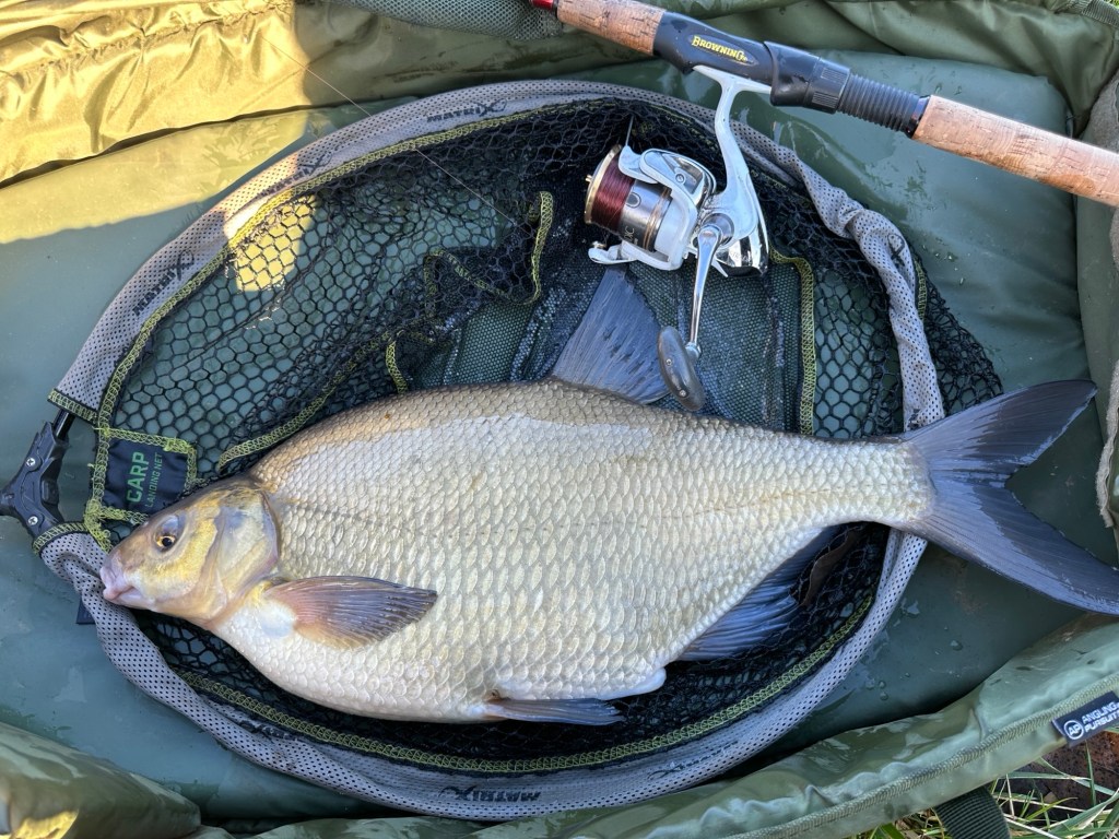 My last session of the month was again chasing specimen Roach but this time it was on a local Stillwater that has on occasions chucked up some huge roach for anglers fishing for other species. The lake in question is usually busy with family’s feeding the ducks, so my approach was similar feed a small amount of liquidised bread and fish a small flake on a size 10 hook. The Morning was frosty at first light whilst I was setting up but with high pressure the bright sunshine was soon poking its face over the trees, these to me weren’t ideal conditions for big Roach. The fishing was slow with just 3 bites all morning and plenty of liners but not from the target species, Bream were the only fish that offered to make an appearance. The first been an immaculate fish and probably the best looking Bream I’ve seen in years, It was in such good healthy condition and when lifted on the scale the needle settled on 6lb 14oz not what I was after but a pleasant consolation on such a quiet day. It was soon packing up time and I hightailed it out of there to the promised of a Roast Sunday Dinner.